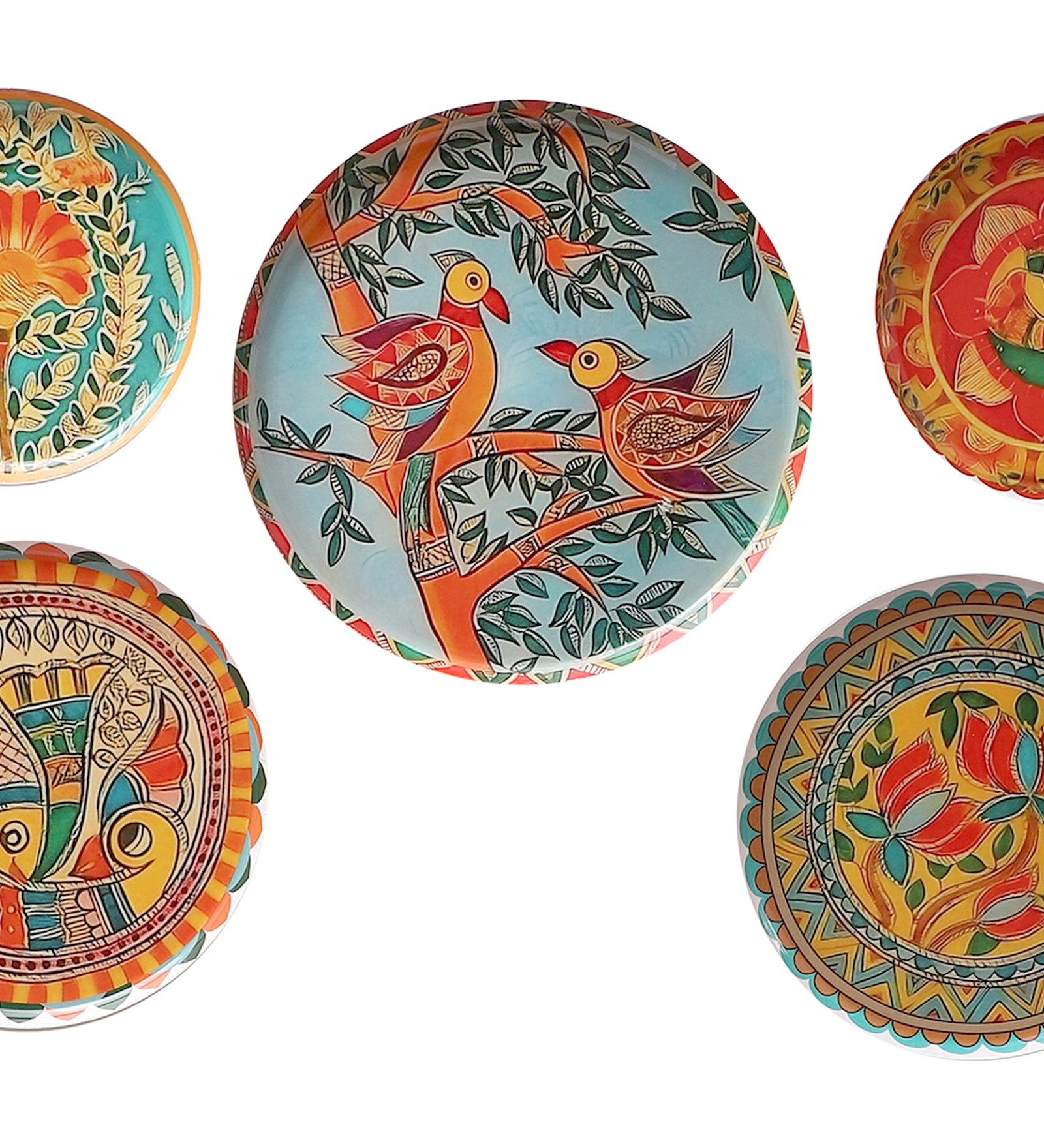 Fish & Bird Metal & Meena Wall Plates Set of 5