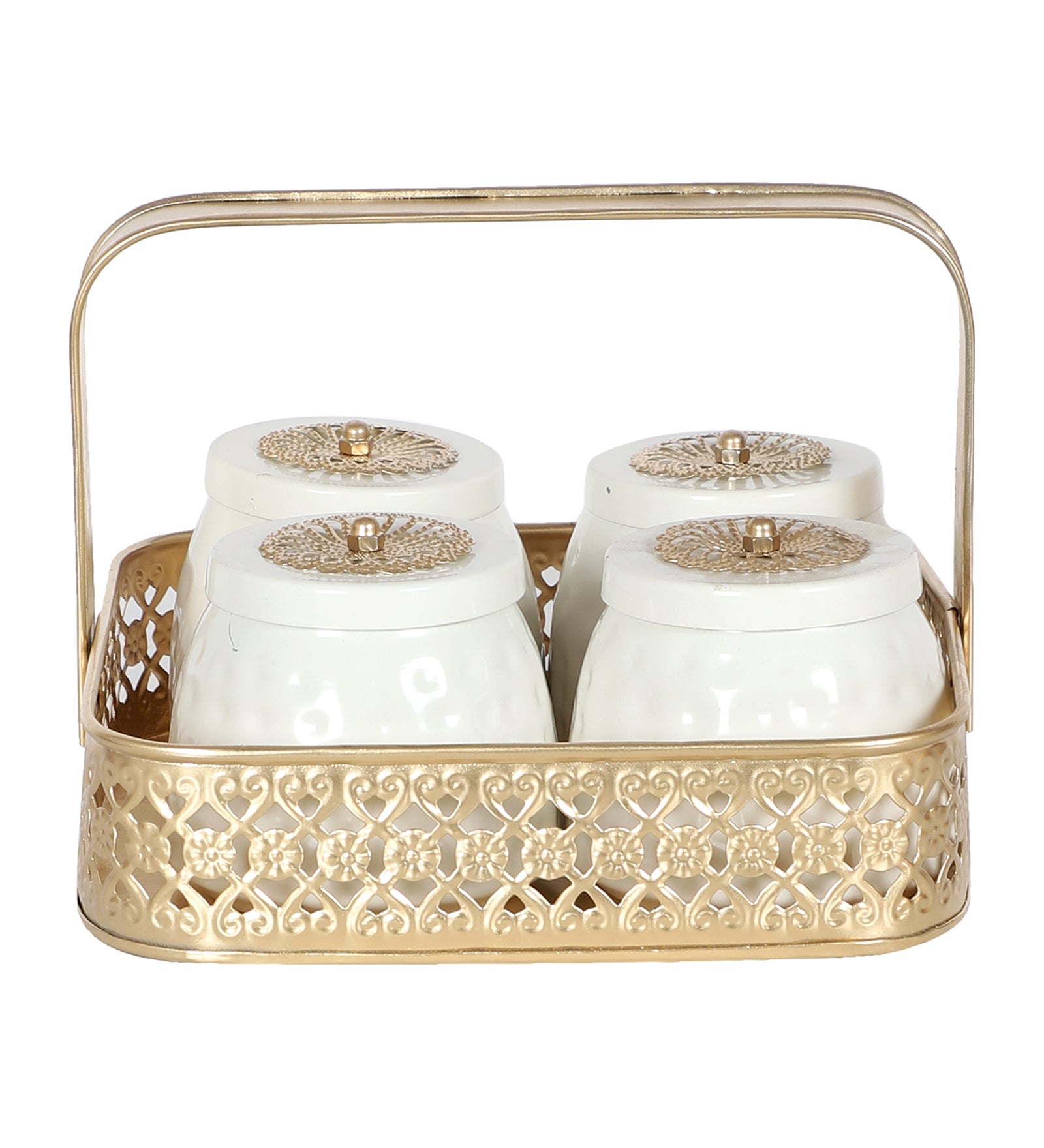 Gold & White Basket With Jar Set of 4 is Perfect for your Home & Office Decor, It can be gifted to your loved ones .