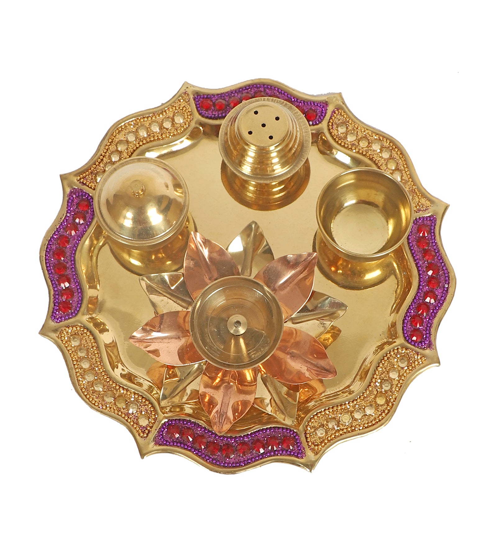 Purple & Gold Bras Pooja Thali