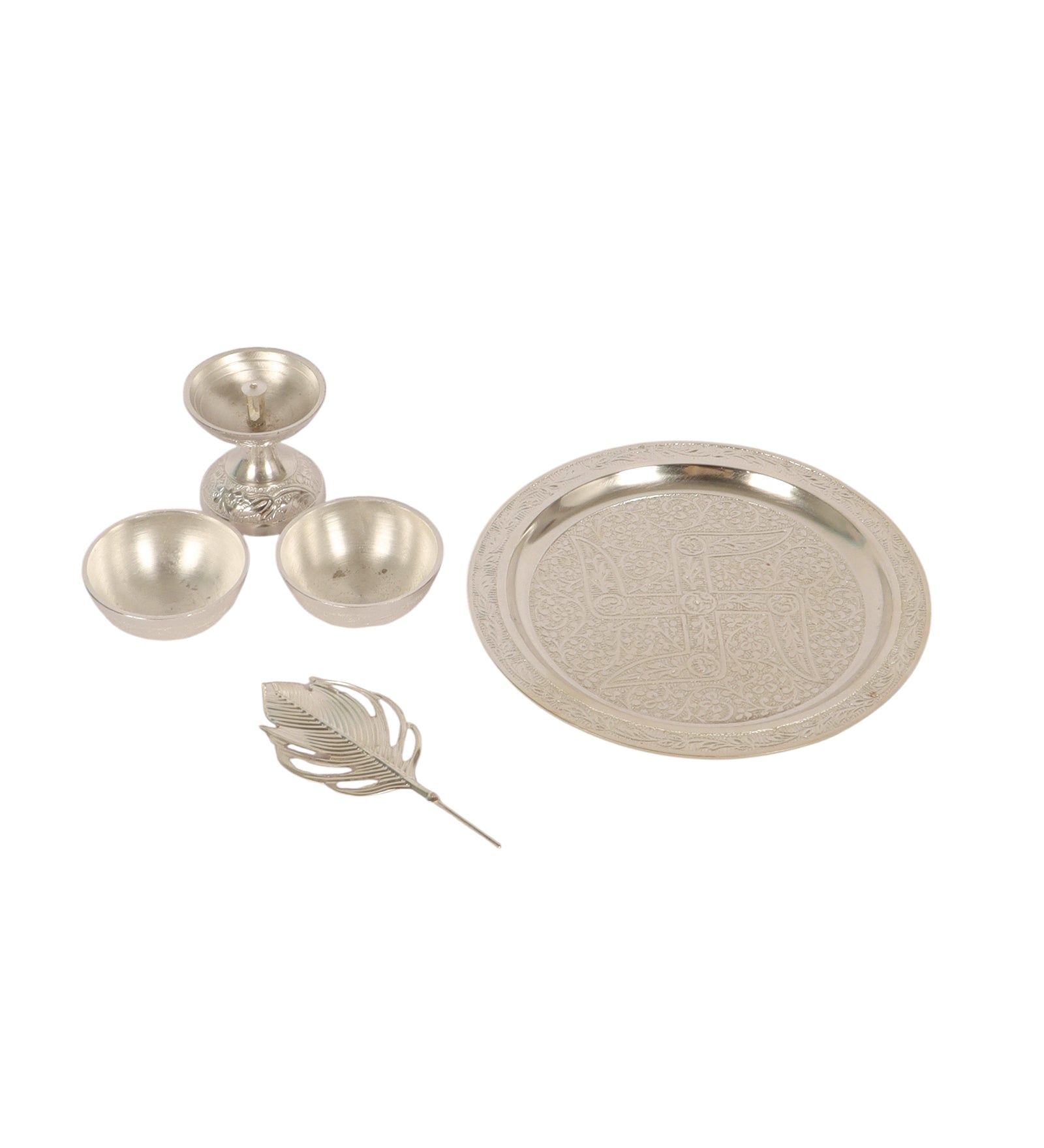 Silver aluminium Pooja thali Set of 5 with velvet box